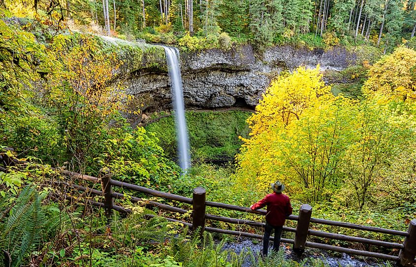 Situé au pied des montagnes Cascade, dans l’Oregon, le parc d’État de Silver Falls est un paradis pour les amateurs de cascades. Le sentier des dix chutes offre aux visiteurs une expérience impressionnante avec dix magnifiques cascades, dont les impressionnantes chutes sud de 177 pieds, où un sentier mène derrière la cascade, offrant une perspective distinctive. Couvrant plus de 9 000 acres, c'est le plus grand parc de l'Oregon, doté d'une forêt pluviale tempérée qui met en valeur la vaste gamme d'espèces végétales et animales de la région. Les formations rocheuses basaltiques du parc révèlent son passé volcanique et glaciaire. De plus, son histoire est marquée par l'exploitation forestière du début du XXe siècle et les efforts du Civilian Conservation Corps, avec des vestiges tels que des ponts et des campings encore présents dans le parc aujourd'hui.