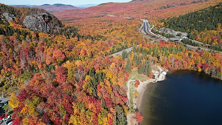 Couleurs d'automne dans le parc national Franconia Notch, New Hampshire, États-Unis.