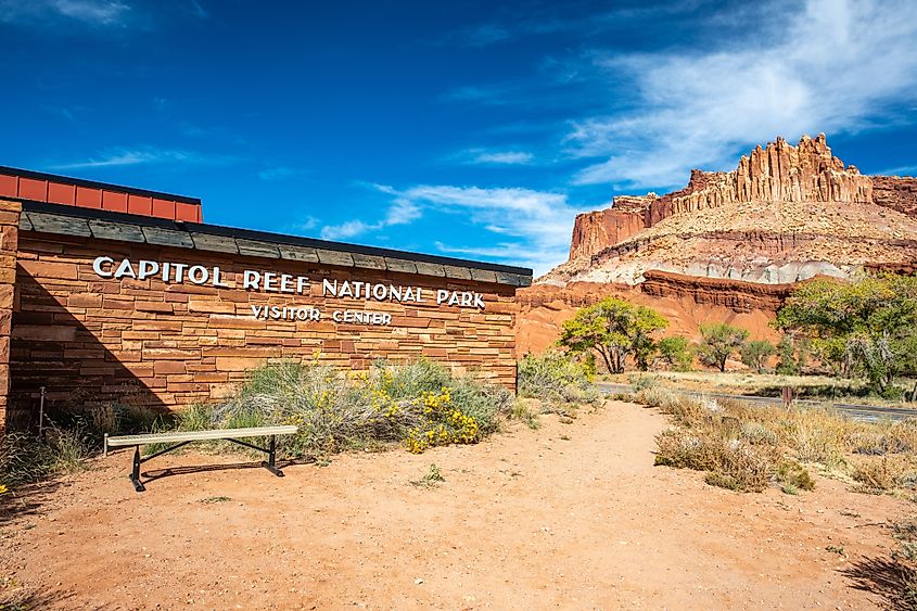 Panneau du parc national de Capitol Reef à Torrey, Utah. Crédit éditorial : Michael Gordon / Shutterstock.com