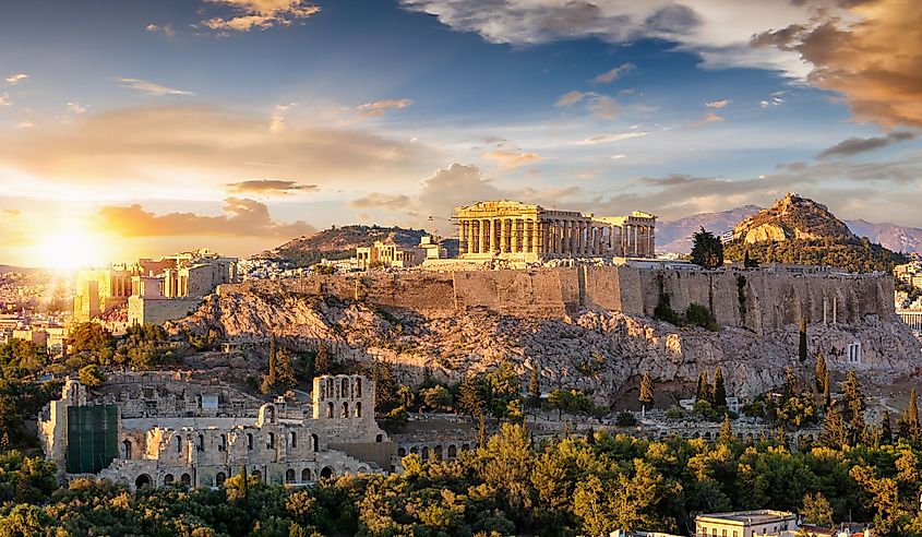 Athènes, située au sud-ouest du continent grec, est la neuvième ville la plus peuplée d'Europe. Environ un tiers des Grecs vivent dans la capitale, connue pour ses profondes racines historiques, philosophiques et politiques. Bien que les rivières traversaient autrefois la ville, elles se sont depuis asséchées, la laissant sans plans d'eau naturels. Athènes est l'une des plus anciennes villes du monde, datant d'avant 3000 avant notre ère. Elle est officiellement devenue la capitale de la Grèce en 1834. La colline de l'Acropole et le Panthéon, l'Odéon d'Hérode Atticus et le temple de Zeus Olympien sont trois monuments historiques remarquables de la ville.