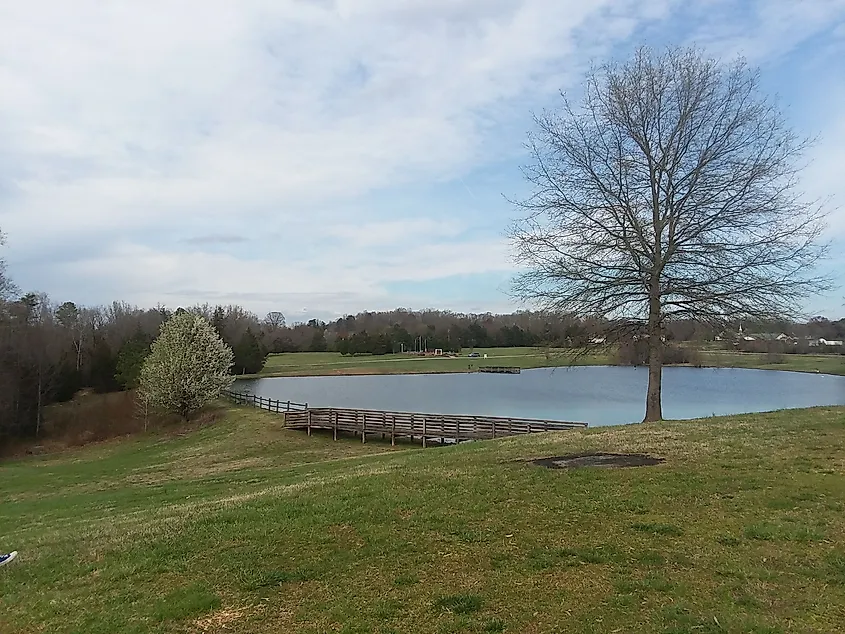 Étang au parc Paul C. Edmunds à South Boston, Virginie.