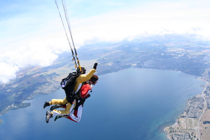 Le lac Taupo s'étend sur 238 miles carrés, ce qui en fait à peu près la même taille que Singapour et le plus grand lac de Nouvelle-Zélande. Bénéficiant en toile de fond de montagnes spectaculaires, les parachutistes profiteront non seulement de la vue sur le lac Taupo, mais également sur les impressionnants monts Ruapehu, Tongariro et Ngauruhoe. Taupo est l'un des sauts en parachute les plus populaires de Nouvelle-Zélande, et pas seulement en raison de ses paysages spectaculaires. C'est l'un des endroits les moins chers du pays pour essayer ce sport extrême, à partir de seulement 199 NZD par personne, ce qui le rend parfait pour tous les voyageurs à petit budget voyageant en Nouvelle-Zélande.