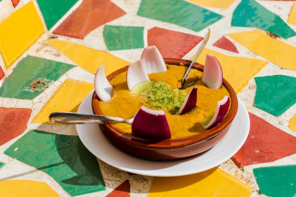 Cet aliment réconfortant des îles Canaries est un humble ragoût de viande rempli de légumes nutritifs. Puchero Canario se compose de poulet, de bœuf, de bacon entrelacé, de chorizo, de pois chiches et de toute une gamme de légumes, dont de la citrouille et de la patate douce.