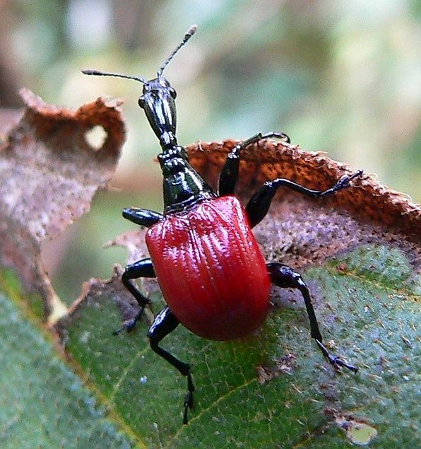 Également connus sous le nom de charançons à cou de girafe, ils sont très frappants avec leur cou distendu, leur tête et leurs pattes noires et leurs ailes rouge vif (bien que seuls les mâles de l'espèce aient un cou extra-long). Les deux sexes sont relativement petits, mesurant environ 1,25 pouces de long.