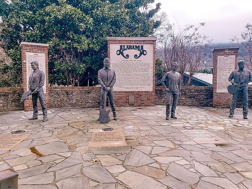 Statues de groupes de l'Alabama au centre-ville de Fort Payne, Alabama. Crédit image VioletSkyAdventures via Shutterstock