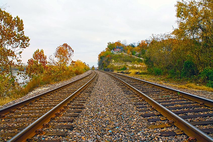 La voie ferrée d'Hermann le long de la rivière Missouri.