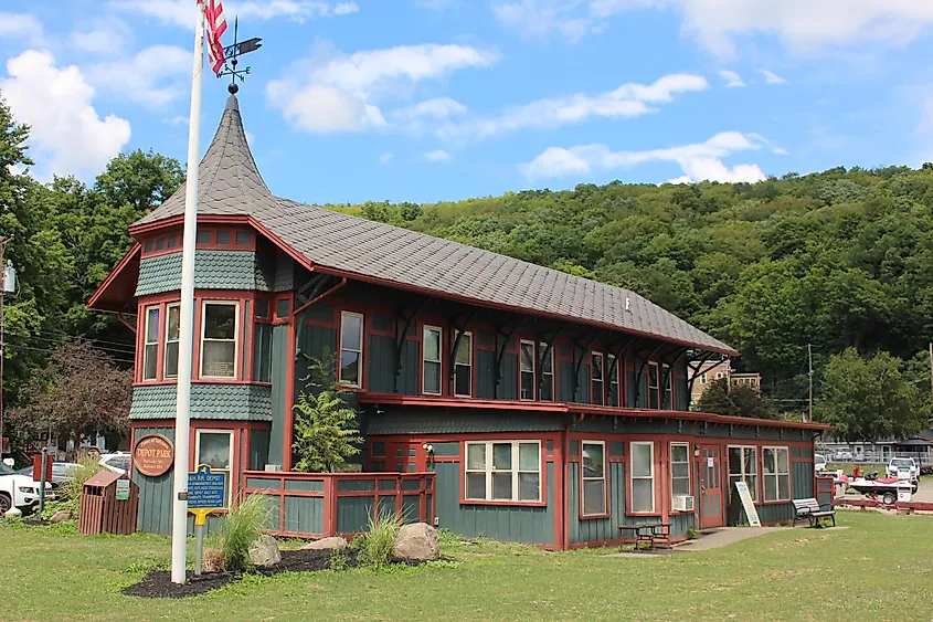 Nommé d'après l'ancien dépôt de train à proximité et faisant autrefois partie du chemin de fer Bath & Hammondsport, le parc remplit désormais clairement d'autres fonctions civiques, reliant l'espace au passé du village en tant que plaque tournante de transport vitale pour la région.