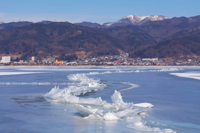 Un autre phénomène hivernal fascinant au lac Suwa est l'Omiwatari, où la surface du lac se fissure bruyamment, formant un long motif de glace en forme de crête. Ce spectacle rare et mystique en a fait l’une des attractions hivernales les plus uniques d’Okaya.