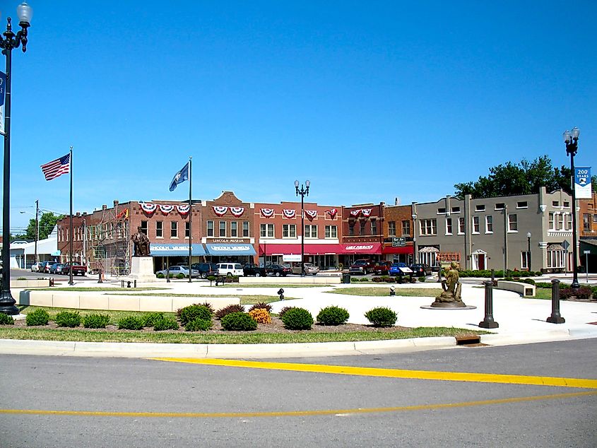 La place de la ville de Hodgenville, dans le Kentucky, accueille de nombreux événements et célébrations. Crédit image : Jamie via Wikimedia Commons.