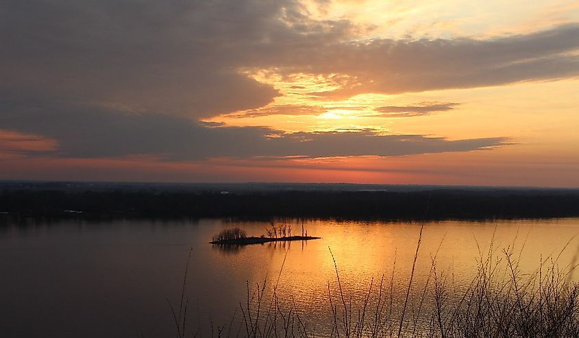 Coucher de soleil sur le fleuve Mississippi près d'Elsah.
