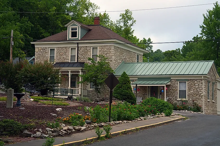 Une maison en pierre dans la ville d'Elsah. Crédit éditorial : Fsendek / Shutterstock.com