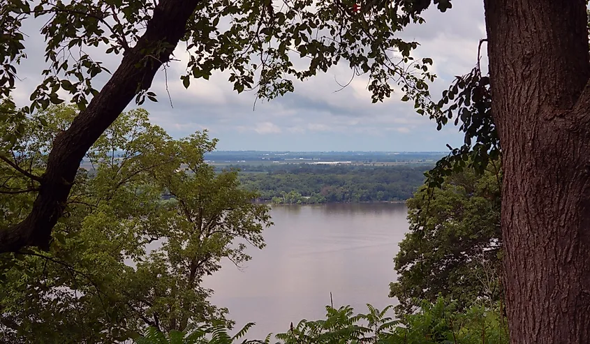 Vue sur le fleuve Mississippi depuis les falaises au-dessus d'Elsah. Crédit image Fsendek via Shutterstock.