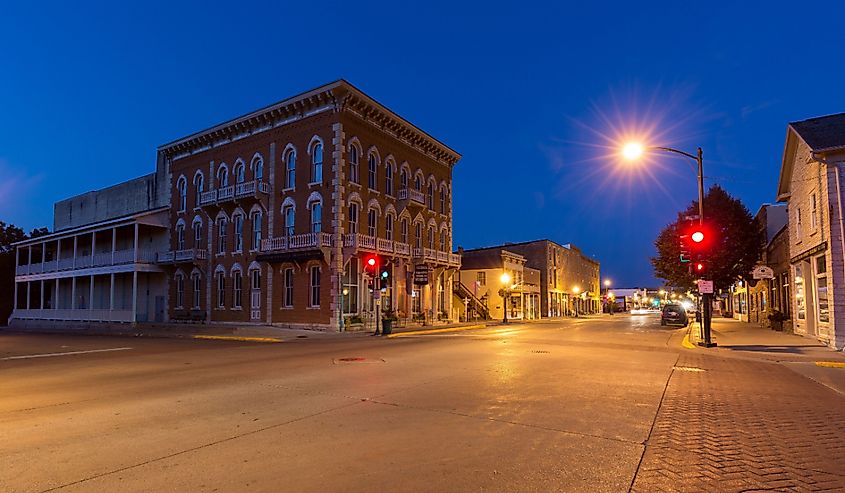 Centre-ville de Decorah, Iowa, et extérieur du musée norvégien-américain de Vesterheim. Crédit image David Harmantas via Shutterstock